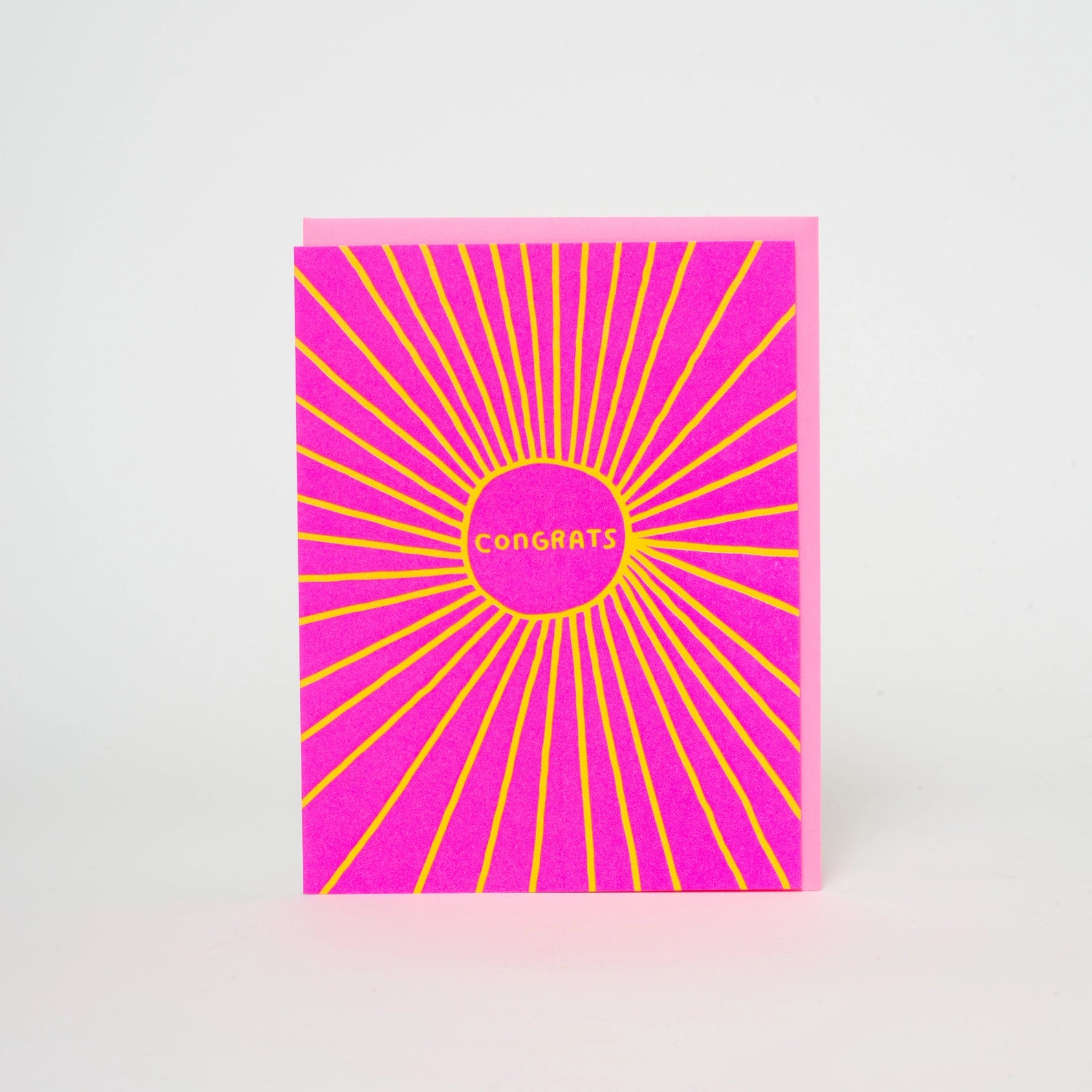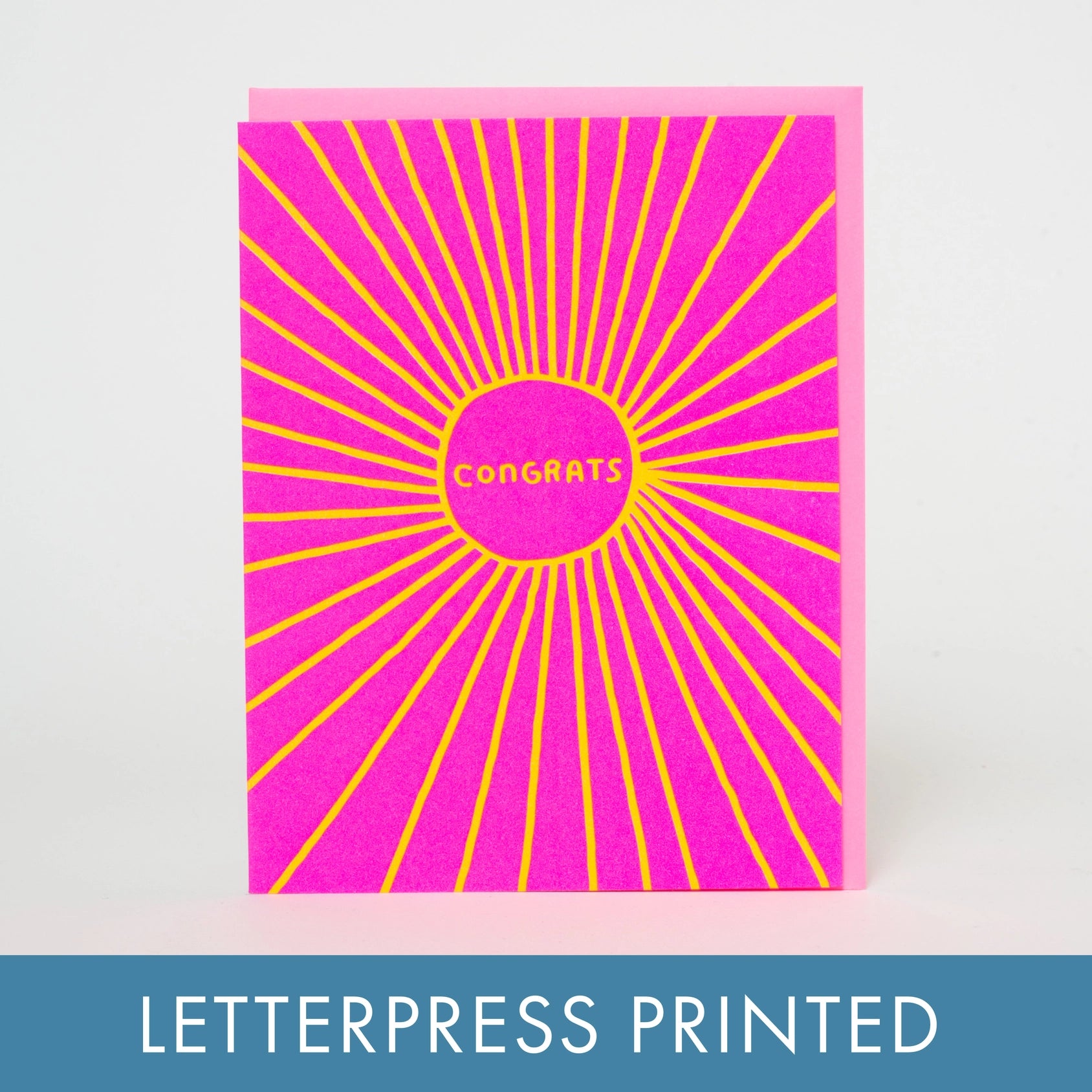 Celebrate big wins in bold style with our Neon Burst “Congrats” Letterpress Greeting Card. Letterpress printed for rich texture and eye-catching detail, it’s perfect for graduations, promotions, new beginnings, or any milestone worth cheering for. Bright, modern, and full of energy, it’s the kind of card that makes the moment feel even more special. Comes with a coordinating envelope.