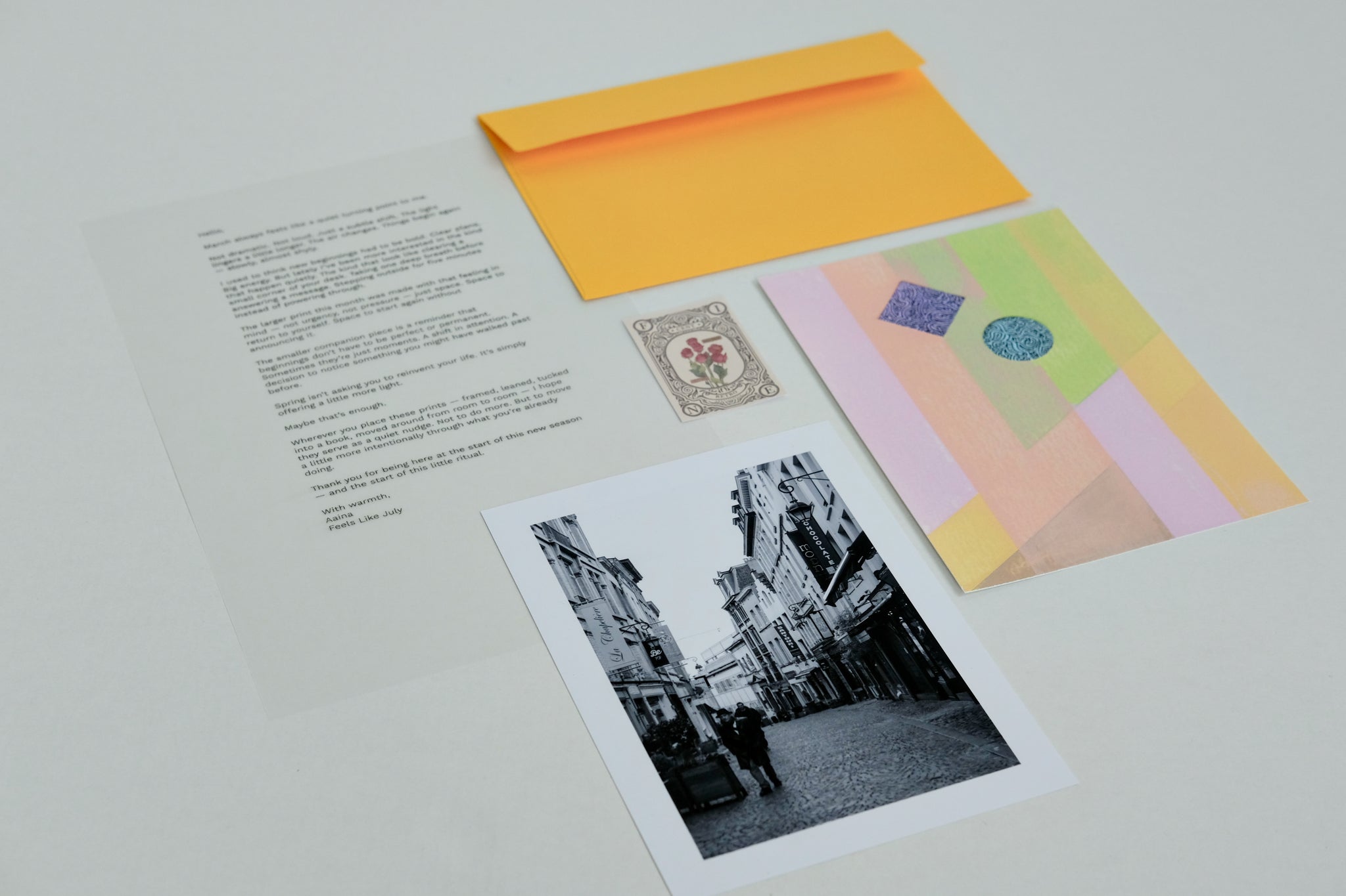 Each month, you’ll receive an envelope containing two prints and a personal letter created intentionally and designed to be lived with. The July Print Club was born from my own art practice, a quiet rhythm of making something by hand each month. What started as a personal ritual has grown into something I’m ready to share. This isn’t just about collecting art, it’s about choosing to notice your life a little more closely.